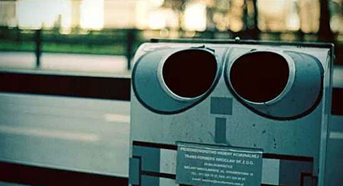 這張地點未明的照片,展現出的不只是楚楚可憐惹人愛的眼神,更重要的是,地球廢品分裝員瓦力和垃圾箱之間的關聯理所當然的會引發人們的會心一笑。