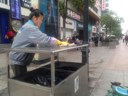 江漢路步行街地區管理辦公室相關負責人介紹,去年底,中山大道改造工程封路施工,江漢路每天往來人流量較以往增長兩到三倍。與此同時,封路后日均垃圾量激增至6噸,較以往增長3倍。該負責人解釋,由于上一批果皮箱容量太小,無法滿足需求,因此從去年開始,就在逐步設計新果皮箱的樣式大小。