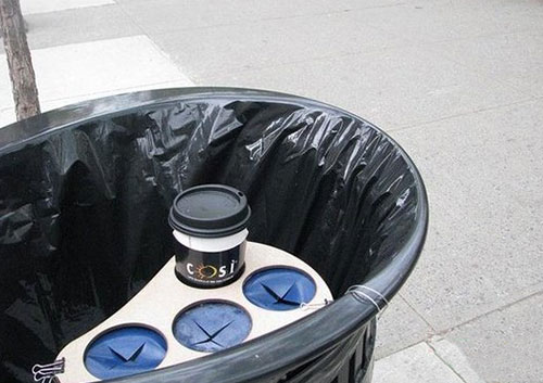 設計師Nicole Howell在看到紐約無家可歸者吃力的翻撿垃圾桶時而激發靈感,設計了這系列帶有人文關懷的環保垃圾桶。很多人在丟垃圾的時候喜歡遠遠的拋擲,就造成了垃圾桶周圍垃圾泛濫的現象,設計師在垃圾桶上面安置一個有彈性的網,提醒人們,小心自己投出去的垃圾成為自己的災難。