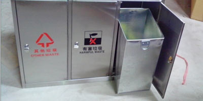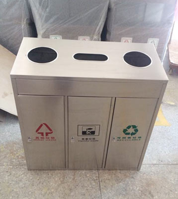 • 產品材質:三分類不銹鋼垃圾桶采用201#,202#,304#優質不銹鋼材料模壓成型,堅固耐用,不易破損;耐火安全,抗高低溫,適合各種惡劣氣候條件;金屬亮澤,高雅美觀,廣泛適用于各種場所;內外表面光潔,減少垃圾殘留,易于清潔;配置鍍鋅板內桶,便于垃圾清倒;