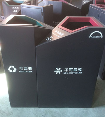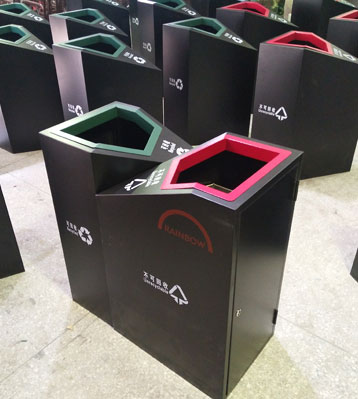 • 使用范圍:鋼板噴塑分類垃圾桶表面光滑、亮麗,是電梯口、寫字樓、學校、物業、賓館、酒店、機場、汽車站等擺放的首選。
