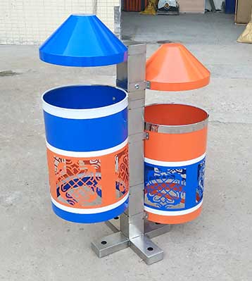 民族風情鋼制垃圾桶獨特設計!