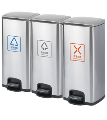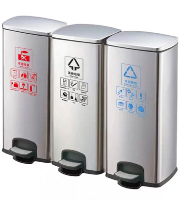 • 使用范圍:90L家用室內不銹鋼腳踏三分類垃圾桶廣泛應用于酒店、會所、咖啡廳、休閑中心、家用、賓館等場所擺放的首選。