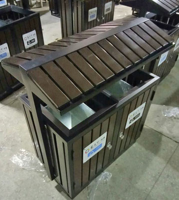 欣方圳屋形鋼木分類垃圾桶桶身細(xì)節(jié)圖