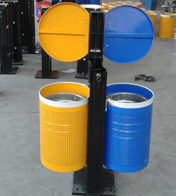 鋼制烤漆分類垃圾桶桶頭圖!